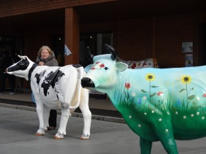 The Abbey sprawls over many floors right down to a very passable dungeon. Food at the tourist restaurants on the island is very expensive. We had a nice lunch and then returned to the parking area on the land – it has accommodation hotels, a supermarket and restaurants all on a grand scale – the tourists in summer must be as thick as blow flies on a carcass.. Painted cows seem very popular.