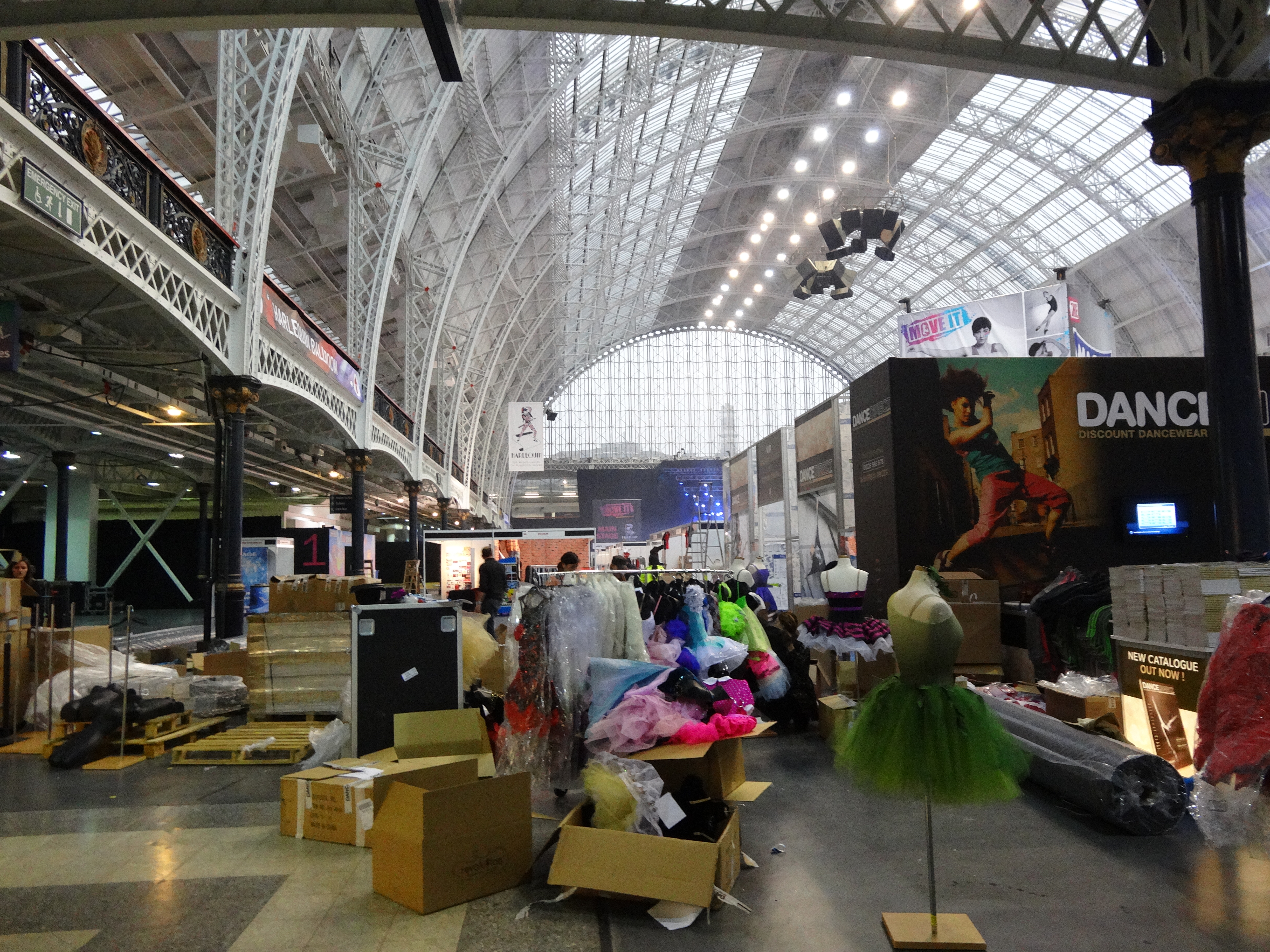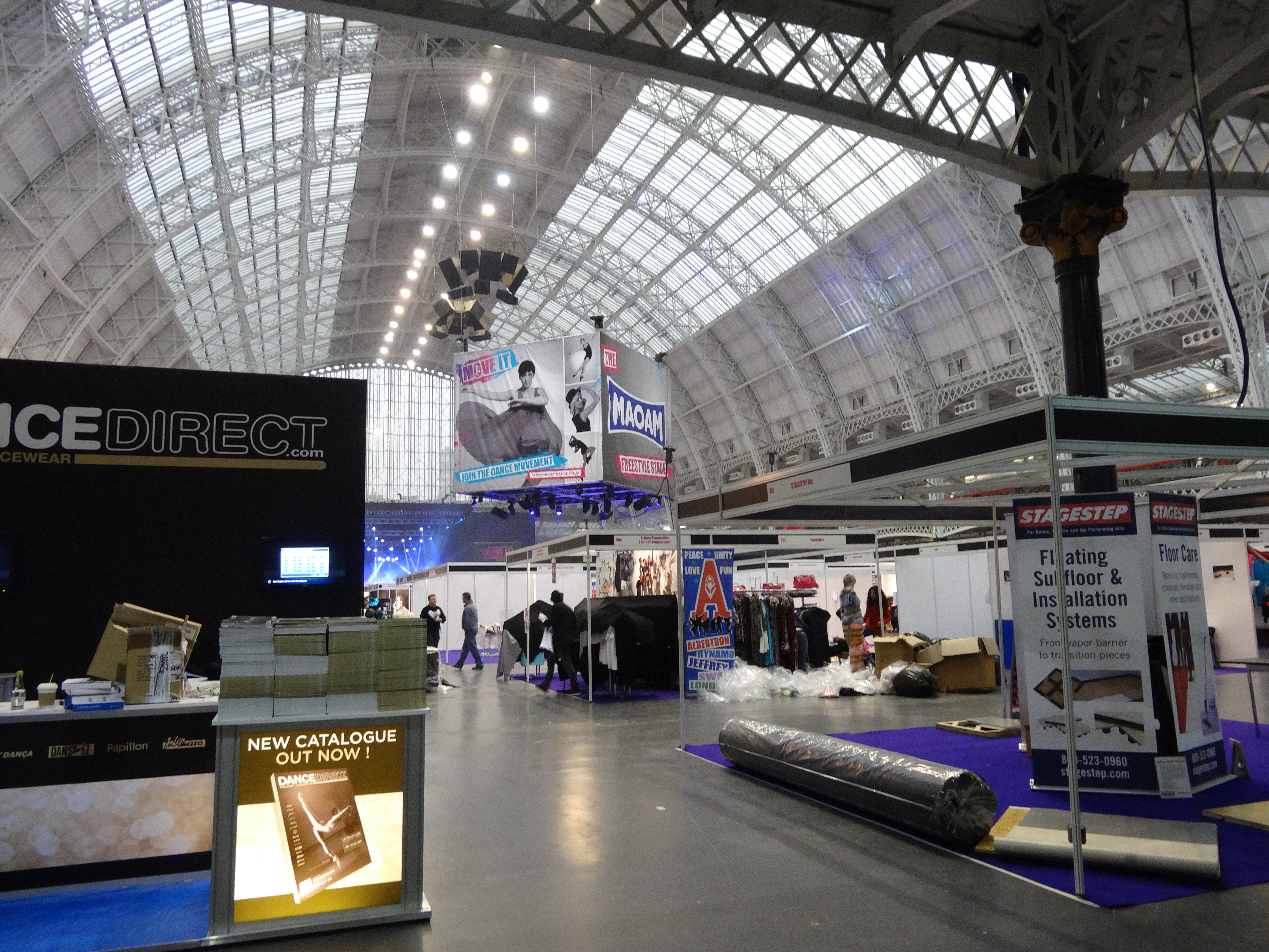 The event is staged in this building and is filled with Universities (dance and theatre are major courses at Universities throughout the UK), Academies, Dance Schools and vendors in interested industries (like fabric specialist Glitter and Dance). This year we had only a mouse hole sized cubical in which we displayed our fabric and website, meeting all the customers and convincing them that although based in Australia they could still buy our fabrics and costumes.
