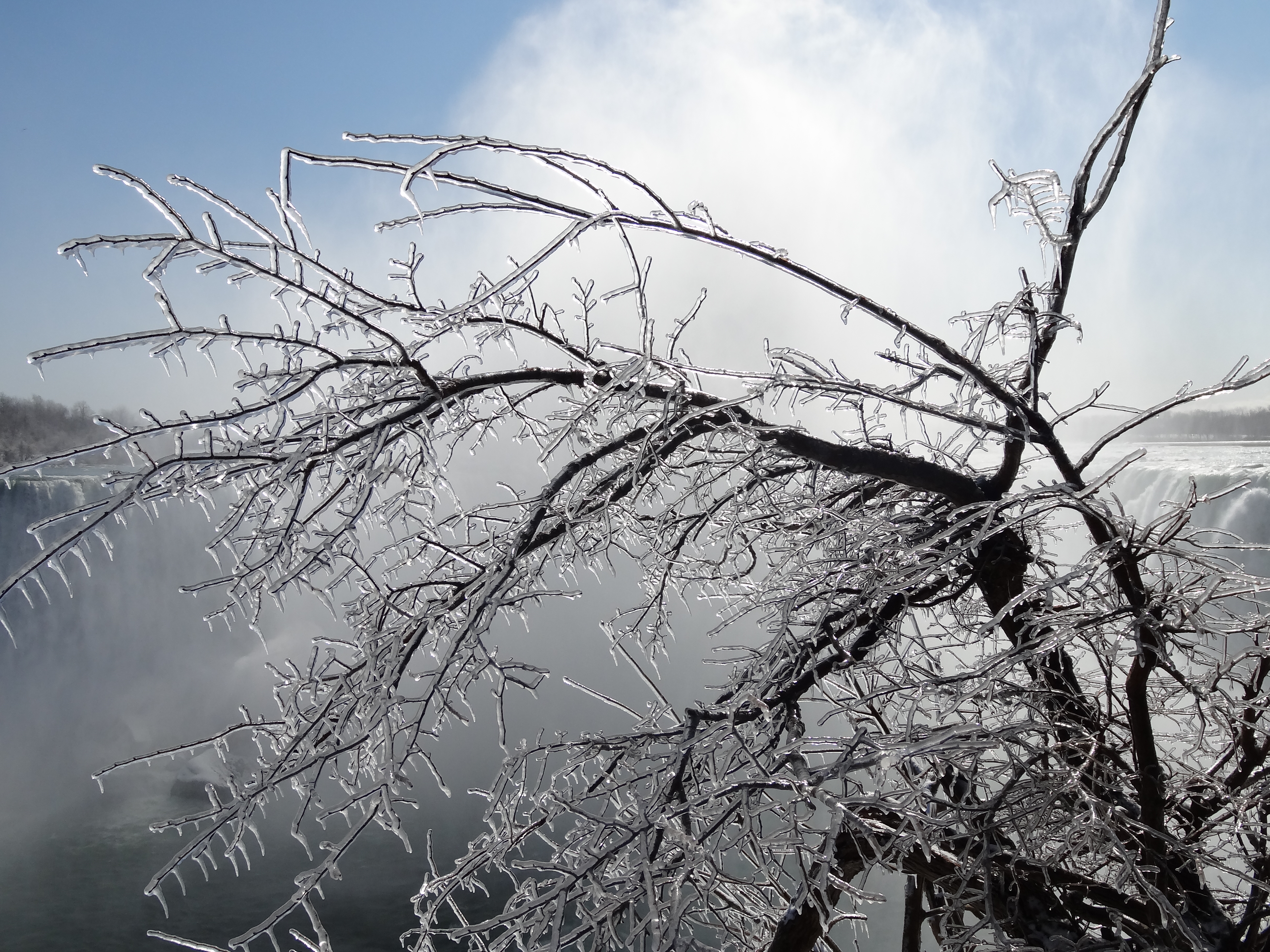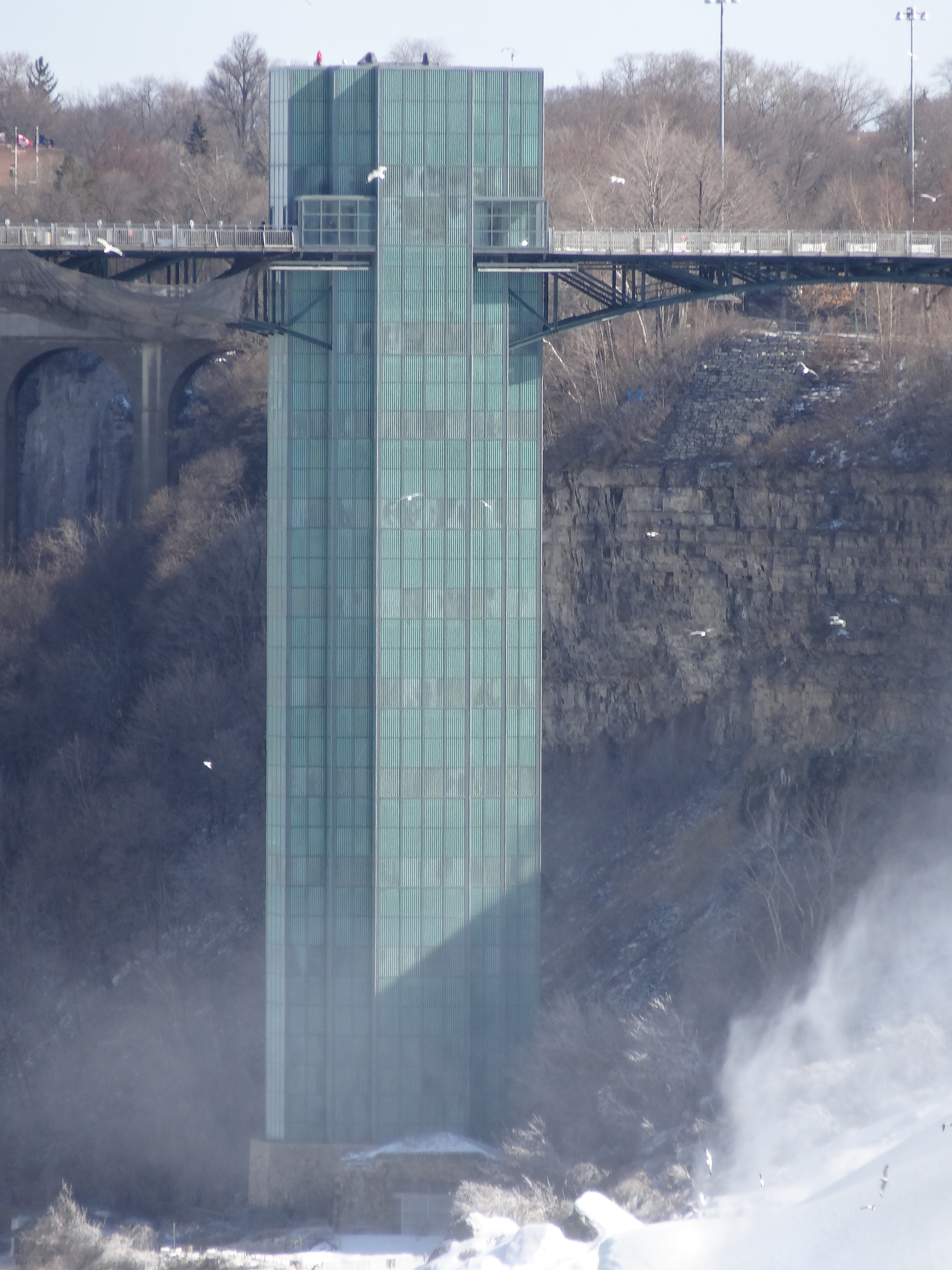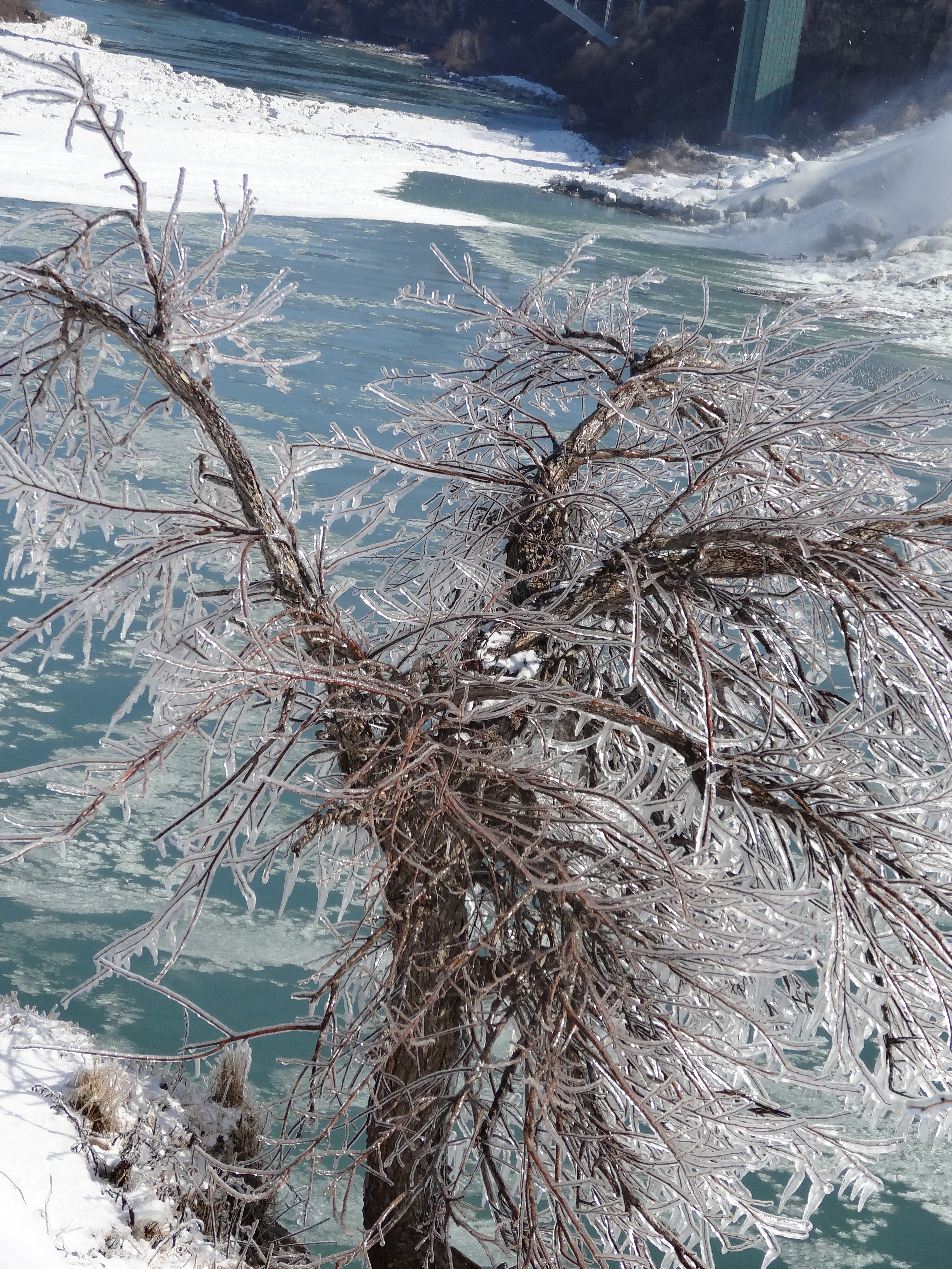 Up early next morning to see the Falls – mist and more mist. But there are two! The semi circular falls on the Canadian side and the USA falls and we could not see either clearly. Determined to see the Falls we set off on foot with brief directions from the staff. We discovered an alternate route (all usual routes being closed for winter!) through the Casino (YES a Casino). Even so it was a 20 minute walk to the edge of the Niagara River and our first view of the USA Falls and the Canadian Falls in the distance. But the camera died apparently I had to recharge the battery. So a further frosty walk up to the Canadian Falls (the weather was cold Kerry was Frosty) and what a sight to behold. Then a brain storm – we would walk back to the hotel and recharge the camera and come back by cab to the Falls on the way to the station.