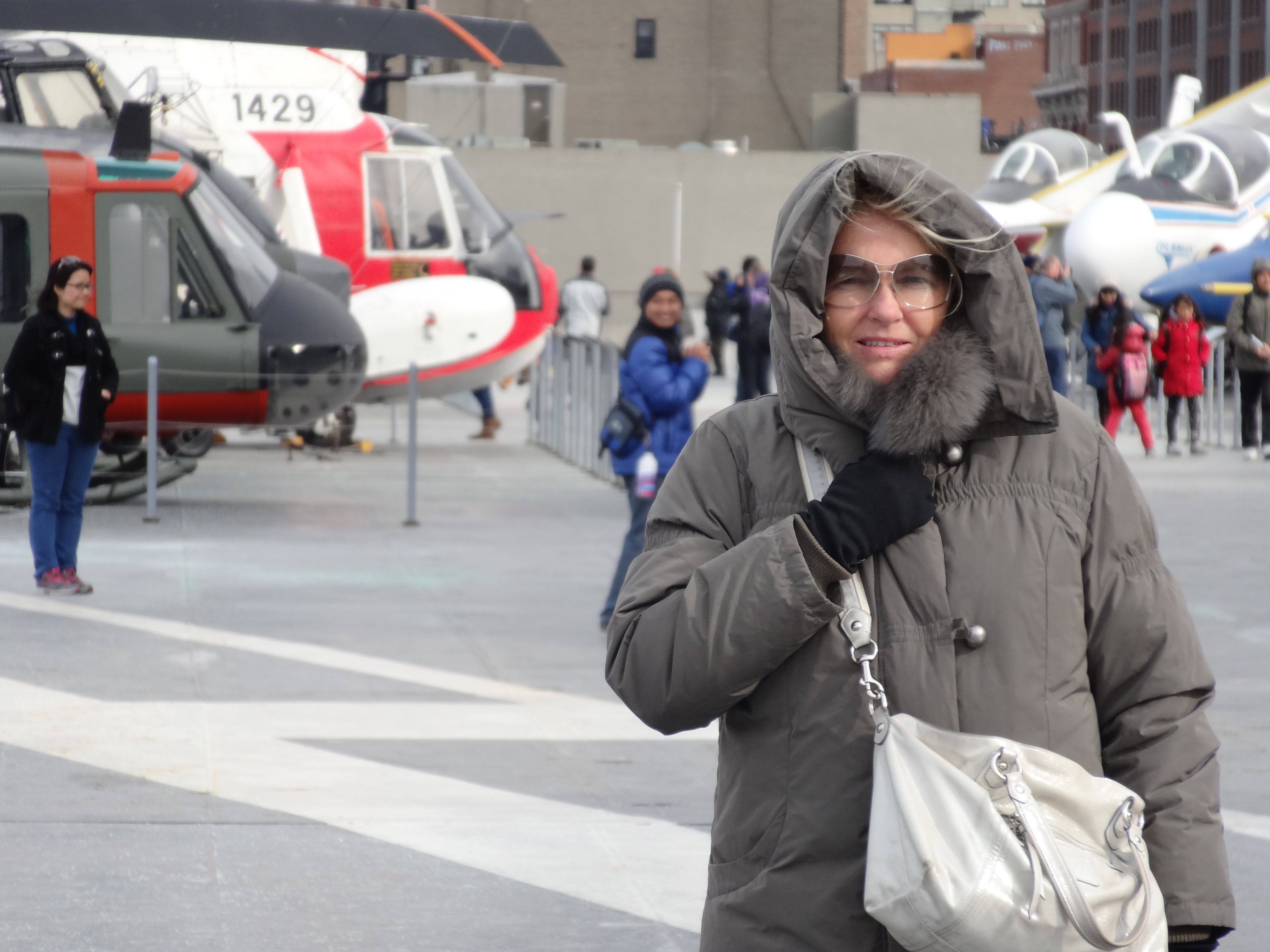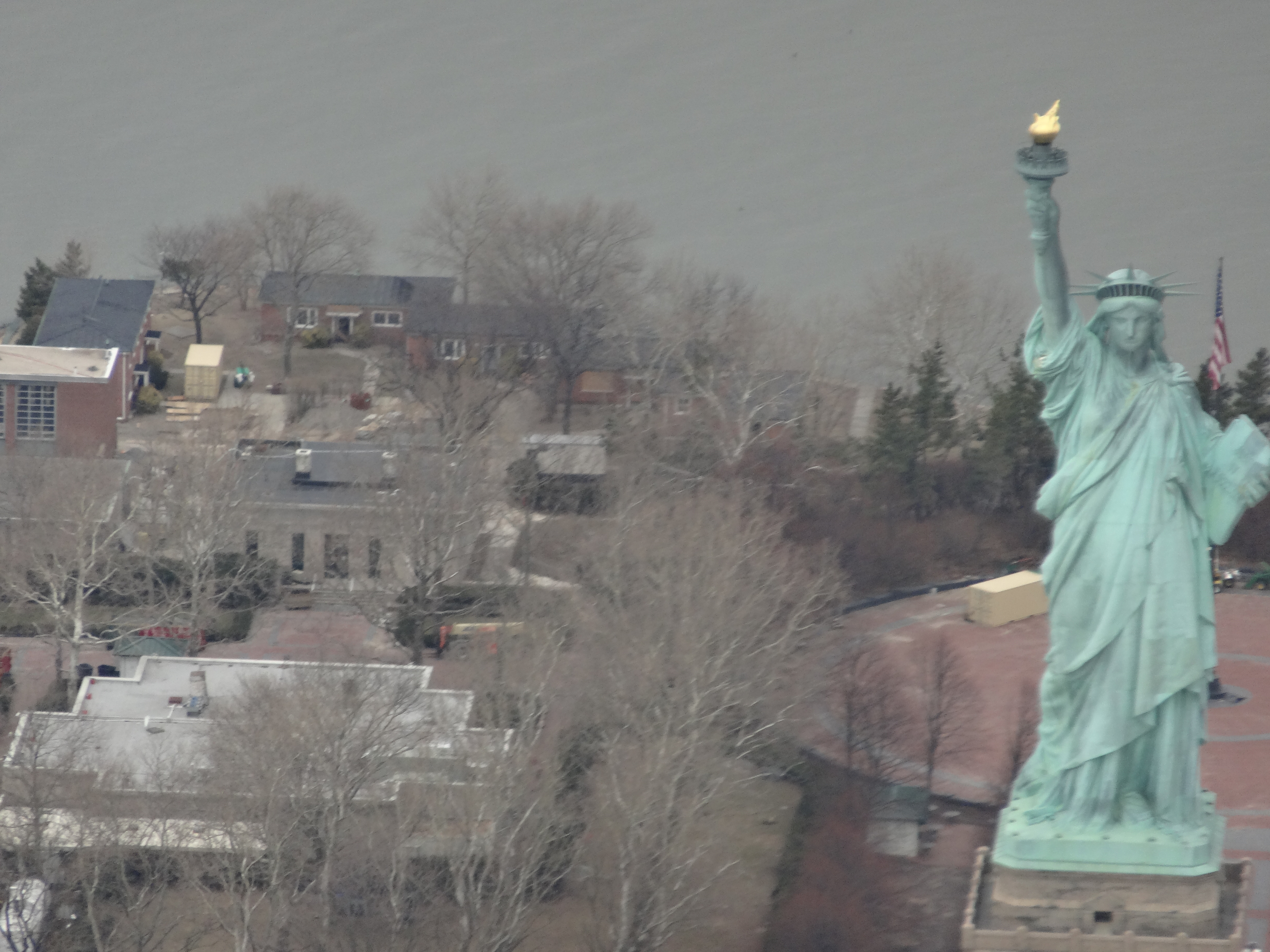 then onto the Hudson River board walk and walked for an hour down to Battery Park did the ferry ride to the Statue of Liberty and Ellis Is. Then the helicopter ride over New York. Walked to the subway and went up to Bloomingdales – by the time we got out of the subway it was snowing and we were glad to get indoors.