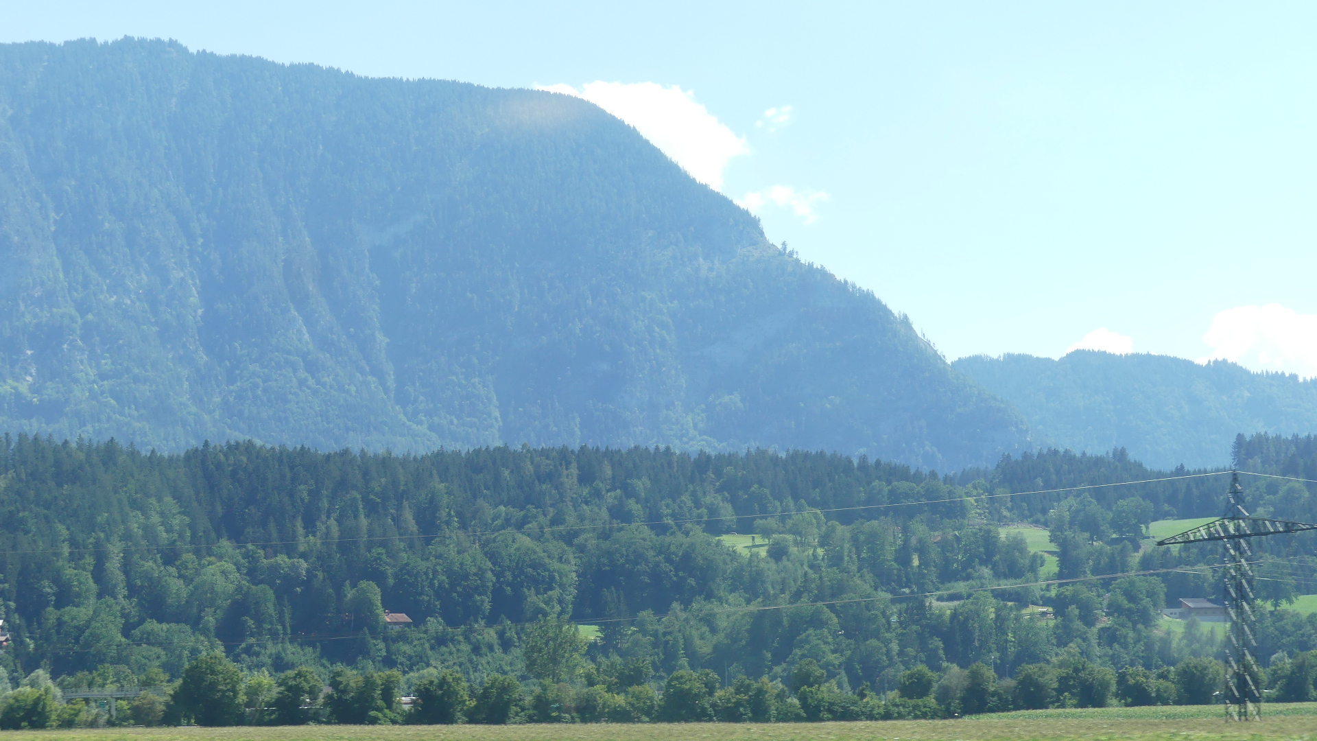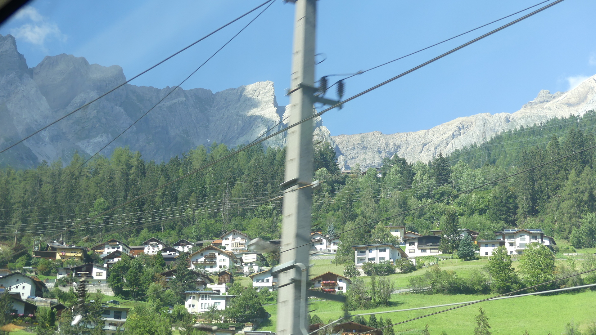 Goodbye Vienna. Our preplanning worked well and we might have caught the train on time if Kerry had not left her handbag in the train station waiting room. Literally she was stepping into the train when she realised it was not there. She ran back to the waiting room, but we knew we had missed our train. However, unlike aeroplanes we could catch the next one with our luggage and the EUrail pass gave us that flexibility. We had chosen first class seats because this is a 7 hour journey with no stops. There is a dining car, and we could order from the menu and get in seat service. The train reached speeds of 221kph and taking photos was often difficult, but we managed to capture some of the pleasant Austrian countryside and Austrian Alps. The following photos trace our journey from outside Vienna to Bregenz and you may notice the progression from plain to Alps in the west.