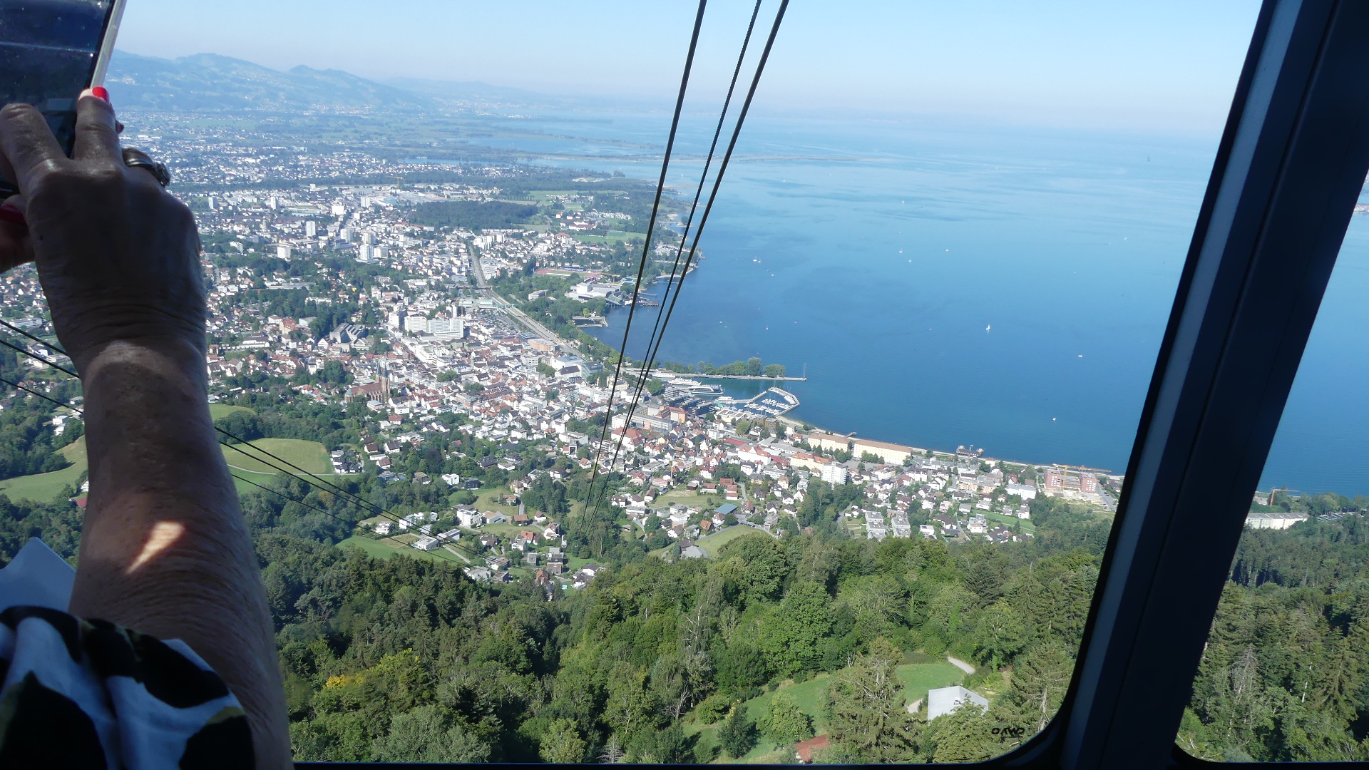 Bregenz is on the banks of Lake Constance Europe’s 2nd biggest Lake and the lake is the border for Austria Germany and Switzerland. The Austrian and Swiss Alps run up to the lake so Bregenz has Pfander mountain at its back. For our first visit to the city/old city we started with the board walk along the lake to the boat terminals and then walked to the cable car to ride to the top of Pfander.