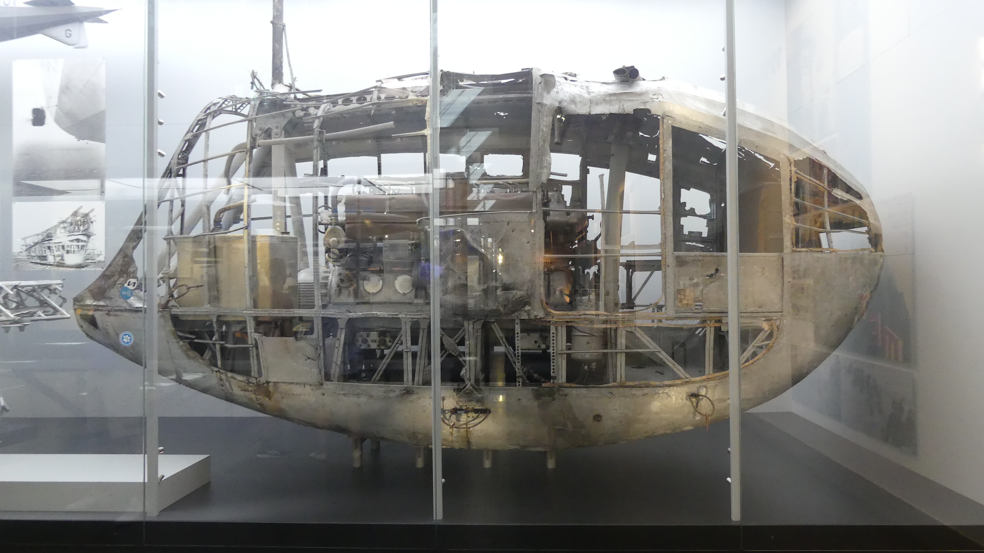 The Hindenburg travelled 18 times to North and South America. On 6 May 1937, while landing in Lakehurst, New Jersey, the airship burst into flames just before touch-down and crashed killing numerous passengers and crew. Some of that wreckage was also on display.